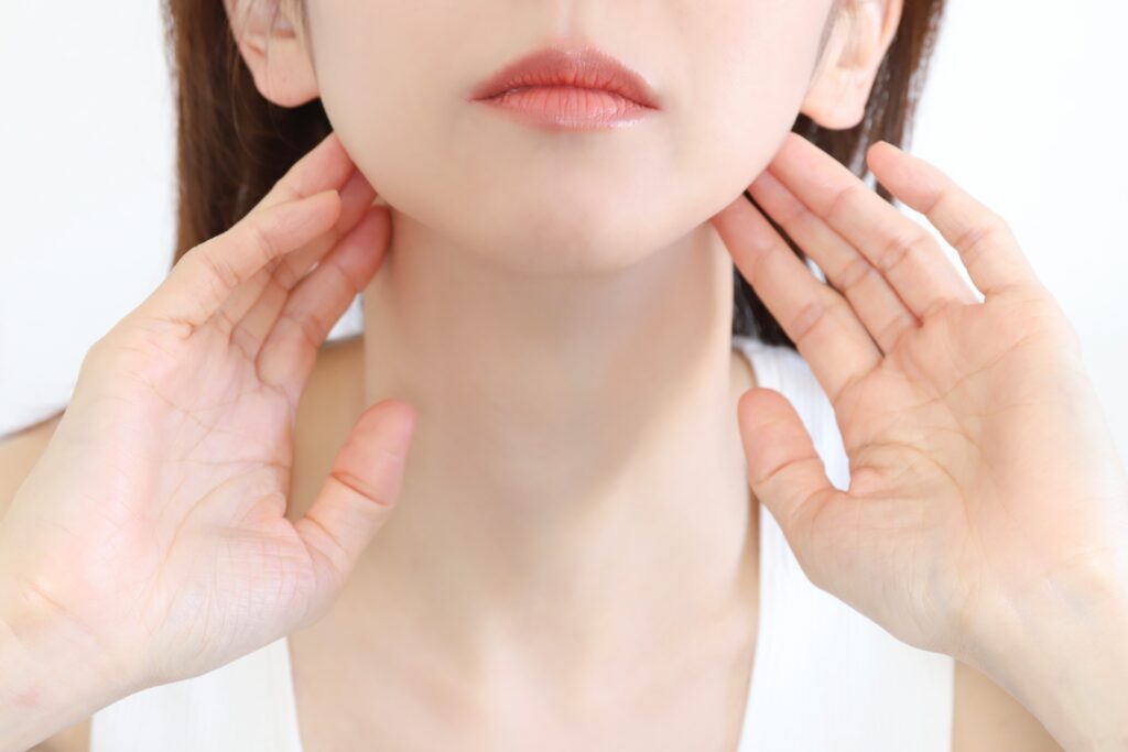 - 胸鎖乳突筋・斜角筋・僧帽筋上部線維に強い過緊張